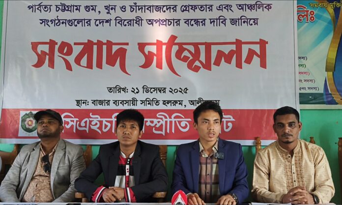 রবিবার (২১ ডিসেম্বর ) বিকাল ৩ ঘটিকার সময় আলীকদম বাজার ব্যবসায়ী সমিতির হলরুমে সিএইচটি সম্প্রীতি জোটের আয়োজনে এ সংবাদ সম্মেলন অনুষ্ঠিত হয়।