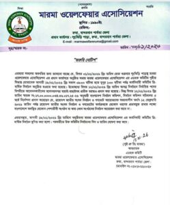 এ প্রেক্ষিতে নির্বাচন কমিশনের নির্দেশনা অনুসরণ করে আগামী ১৯ জানুয়ারি অনুষ্ঠিতব্য মারমা ওয়েলফেয়ার এসোসিয়েশনের কার্যনির্বাহী কমিটির ত্রি-বার্ষিক নির্বাচন স্থগিত ঘোষণা করা হয়।