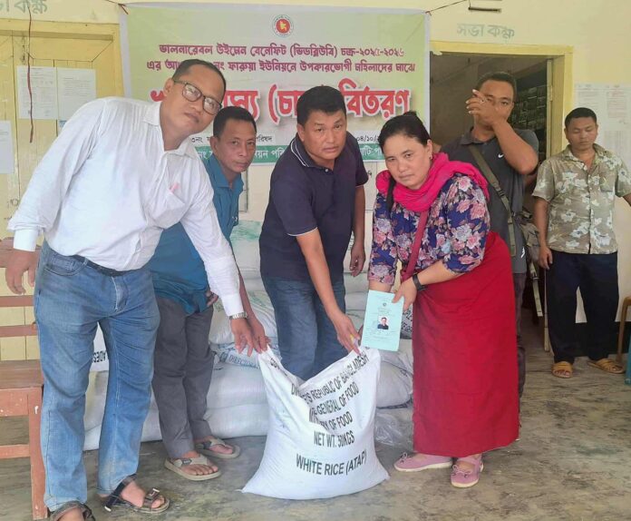 বিলাইছড়ি উপজেলার ৩ নং ফারুয়া ইউনিয়নে ভালনারেবল উইমেন বেনিফিট ( VWB) কর্মসূচীর আওতায় উপকারভোগীদের মাঝে চাউল বিতরণ করা হয়েছে। ইউনিয়ন পরিষদ চেয়ারম্যান বিদ্যালাল তঞ্চঙ্গ্যা নিজেই এইসব চাউল বিতরণ করেন।