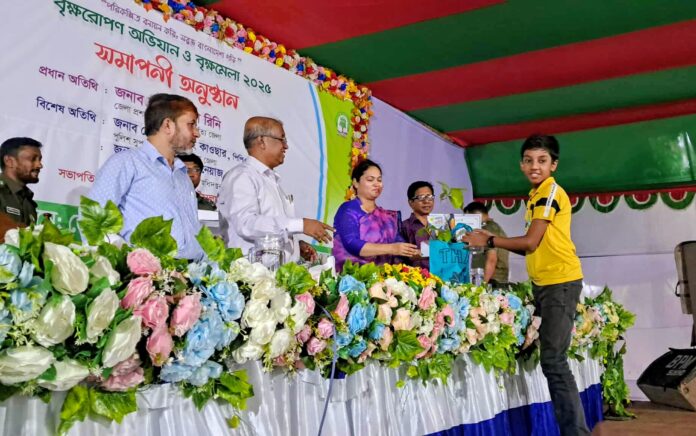 ছবিক্যাপশনঃ সপ্তাহব্যাপী বৃক্ষরোপণ অভিযান ও বৃক্ষমেলার সমাপনী দিনে পুরস্কার বিতরণ করেন জেলাপ্রশাসক শামীম আরা রিনি।