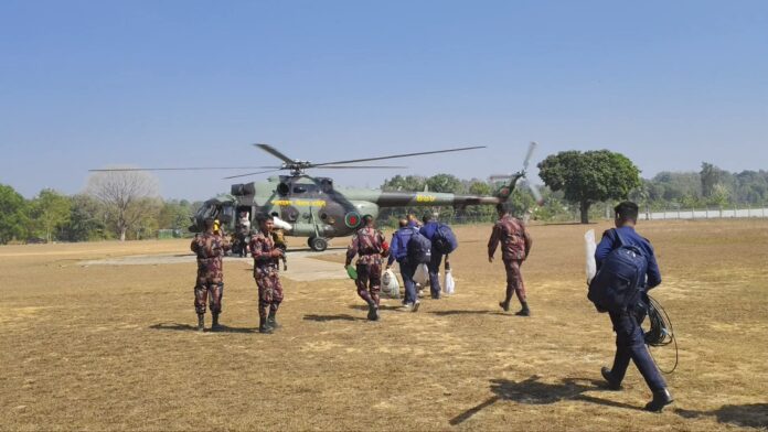 বাঘাইছড়িতে দূর্গম কেন্দ্রগুলোতে হেলিকপ্টারে পৌঁছালো নির্বাচনী সরঞ্জাম