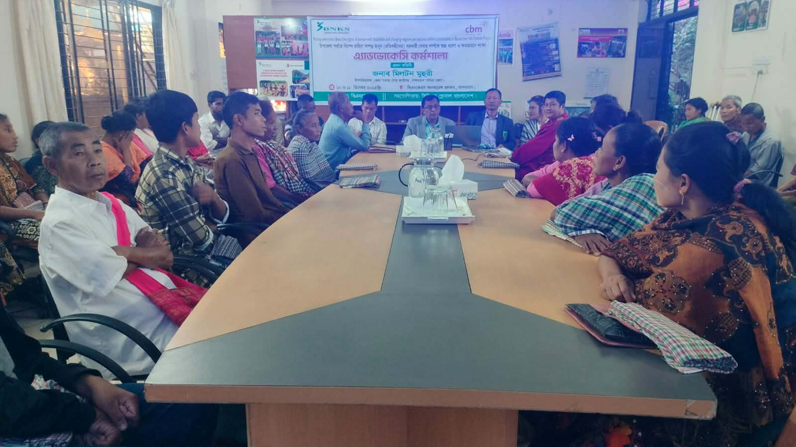 বিএনকেএস-এর সভানেত্রী নেমকিম বম-এর সভাপতিত্বে অনুষ্ঠিত দুই দিনব্যাপী অ্যাডভোকেসি কর্মশালার প্রথম দিনে আরও উপস্থিত ছিলেন বিশিষ্ট মানবাধিকার কর্মী অংচ মং মারমা, অ্যাডভোকেট সারা সুদীপা ইউনুস, বিএনকেএস-এর উপনির্বাহী পরিচালক উবানু মারমা, হেডম্যান থোয়াই হ্লা প্রু মারমা, বিএনকেএস-এর ট্রেনিং অফিসার পারমিতা চাকমা, প্রকল্প ম্যানেজার ভানমুনসিয়াম বম, সাংবাদিক সুফল চাকমাসহ বিভিন্ন এলাকা থেকে আগত উপকারভোগীরা।