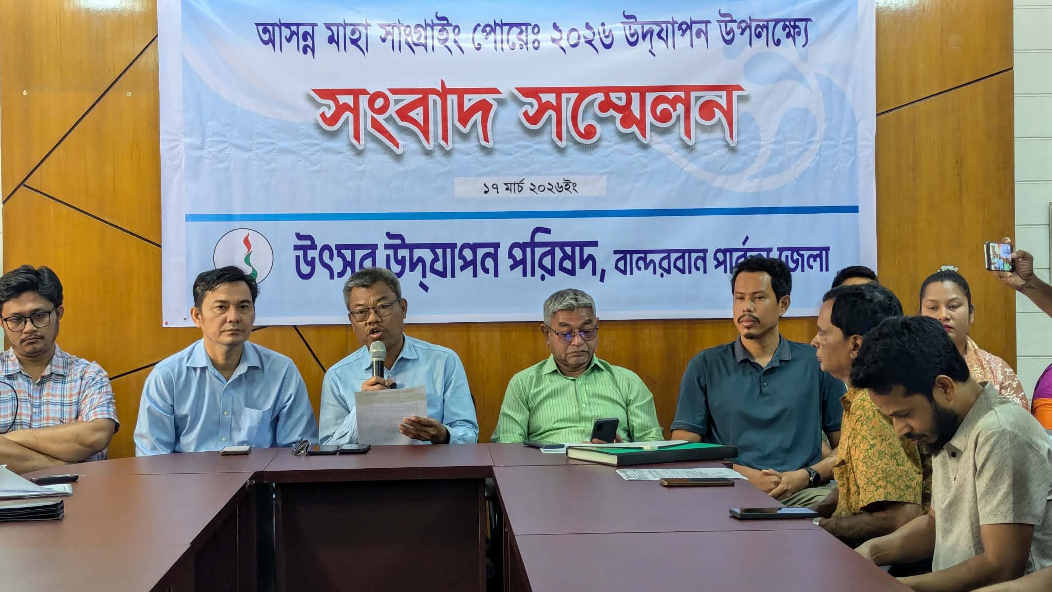 সংবাদ সম্মেলনে উৎসব উদযাপন পরিষদের সভাপতি চ নু মং মার্মা, সাধারণ সম্পাদক উক্যসিং মার্মা, সহ-সভাপতি থুইসিংপ্রু লুবু, যুগ্ম সম্পাদক অংথোয়াইচিং মার্মা, সাংস্কৃতিক সম্পাদক মাং মাং সিং মার্মা এবং নির্বাহী সদস্য উমেপ্রু ও ছাই ছাই টুটুসহ জেলা কর্মরত সাংবাদিকরা উপস্থিত ছিলেন।