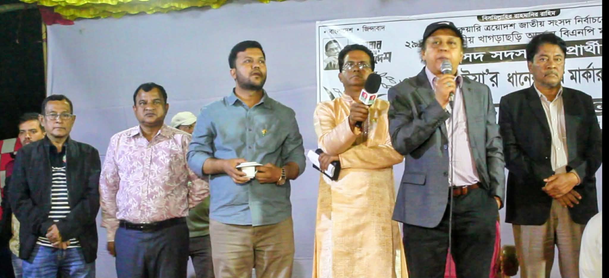 খাগড়াছড়ি বিএনপি সভাপতি ও ২৯৮ নং আসনে ধানের শীষের প্রার্থী ওয়াদুদ ভূইয়া’কে ফুল দিয়ে