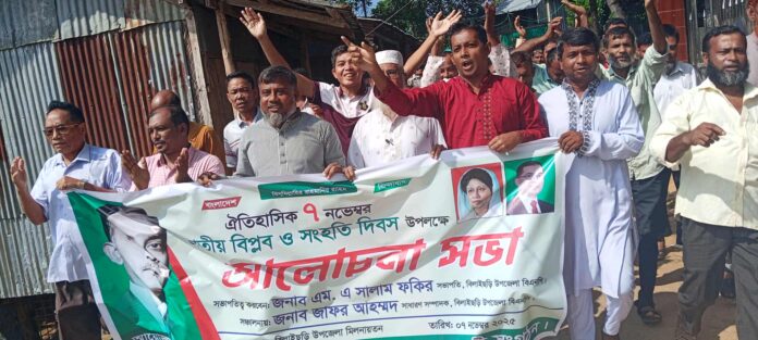 শুক্রবার (৭ নভেম্বর) সকাল ১০টায় উপজেলা বিএনপি’র আয়োজনে একটি র্যালী বাজার ও উপজেলার প্রধান প্রধান সড়ক প্রদক্ষিণ করে। পরে উপজেলা বিএনপি’র কার্যালয়ে এসে এক সভা আয়োজন করা হয়। সকালে দলীয় ও জাতীয় পতাকা উত্তোলন করা হয়।