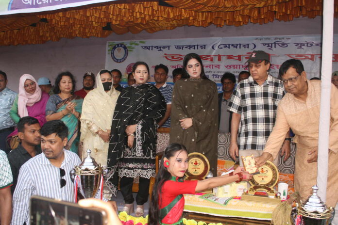 খেলার মাঠে উদ্বোধনী ফুটবল খেলায় উপভোগ করতে উপজেলায় হাজারো দর্শক সমাগম হয়েছে। খেলায় বিরতি সময়ে উপজেলায় শিশুদের ডিসপ্লে মাধ্যমে বিএনপি দল’কে নিয়ে গাওয়া মনোমুগ্ধকর পরিবেশনায় ধানের শীষের নির্বাচনী থিম সংয়ের উদ্বোধন করেন ওয়াদুদ ভুইয়ার।