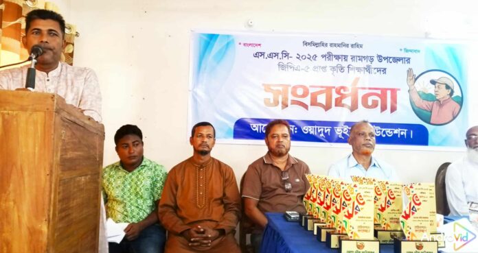 রামগড়ে ওয়াদুদ ভূঁইয়া ফাউন্ডেশনের উদ্যোগে জিপিএ ৫ প্রাপ্ত শিক্ষার্থীদের সংবর্ধনা