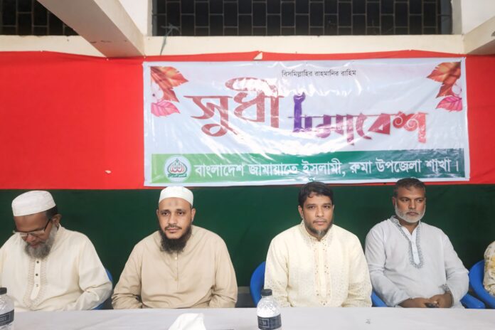 বান্দরবানের রুমা উপজেলায় বাংলাদেশ জামায়াতে ইসলামীর উদ্যোগে এক সুধী সমাবেশ অনুষ্ঠিত হয়েছে। আজ ৯ সেপ্টেম্বর (মঙ্গলবার) রাত নয়টা দিকে রুমা বাজারস্থ মায়াকুঞ্জ হলে এ সমাবেশ অনুষ্ঠিত হয়।