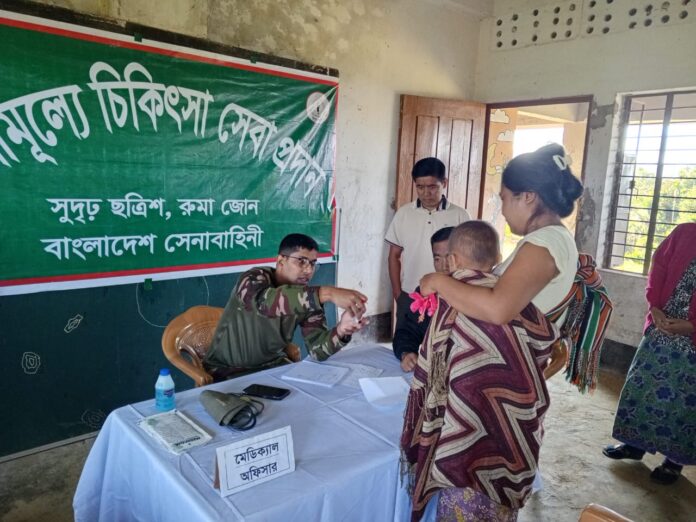 গত ৪ ও ৫ তারিখ সকালে দুইদিন ব্যাপি এ চিকিৎসা সেবা প্রদান করেন রুমা জোনের অধিনায়ক লে: কণেল মেহেদী হাসান, এসবিপি, পিএসসি।