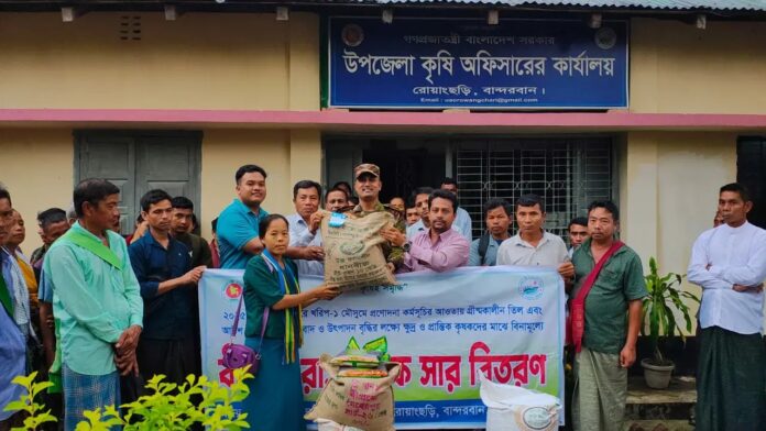 বান্দরবানের রোয়াংছড়ি উপজেলায় প্রান্তিক কৃষকদেও উৎপাদন বৃদ্ধিতে সহায়তা দিতে আউশ ধান ও তিলের বীজ প্রণোদনা কর্মসূচির আওতায় ১২০০জন কৃষকের মাঝে কৃষি উপকরণ বিতরণ করা হয়েছে।