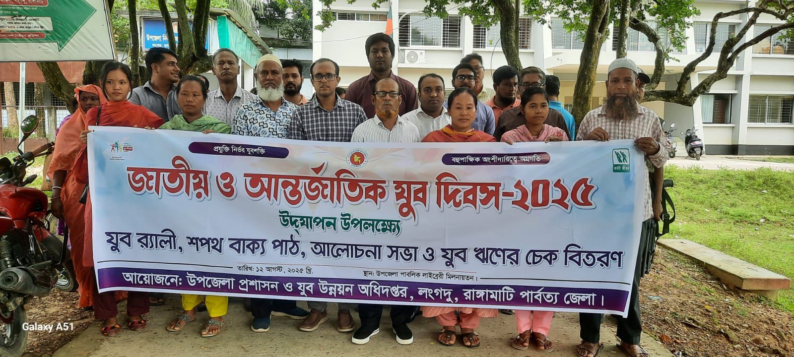 “নেতিবাচকতা থেকে মুক্ত তরুণ সমাজই গড়বে উন্নত বাংলাদেশ”—এই শপথে রাঙামাটির লংগদু উপজেলায় বর্ণাঢ্য আয়োজনে জাতীয় ও আন্তর্জাতিক যুব দিবস-২০২৫ উদযাপিত হয়েছে। মঙ্গলবার (১২ আগস্ট) সকালে উপজেলা পরিষদ চত্বর থেকে এক বর্ণাঢ্য র্যালি বের হয়ে উপজেলার প্রধান প্রধান সড়ক প্রদক্ষিণ করে উপজেলা পাবলিক লাইব্রেরি মিলনায়তনে শপথ পাঠ, আলোচনা সভা ও চেক বিতরণ অনুষ্ঠিত হয়।